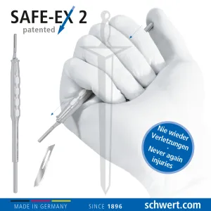 The daily risk of injuries by mounting and especially dismounting of blades is not avoidable by standard blade holders. The new SCHWERT SAFE-EX 2 changes the daily routine eminently.