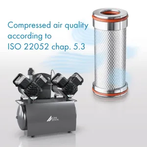 The new Tornado also relies on proven components including the established membrane drying system having a 100 % duty cycle. The system does not require any interruptions for regeneration or even replacement of drying agents. In combination with a three-stage filter system and an oil-free compression the new Tornado steadily delivers dry, oil-free and hygienic compressed air, thus protecting both the equipment (e.g. corrosion prevention for the dental unit air motors) and the treatment results (e.g. effective adhesive bonding, adequate retention pattern, keeping away harmful germs).
