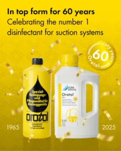 It is best when you can rely on a system. It was way back in 1965 that DÜRR DENTAL first developed Orotol – the first disinfectant for suction systems. This marked the beginning of the continuous development and refinement of our expertise in the hygiene area.